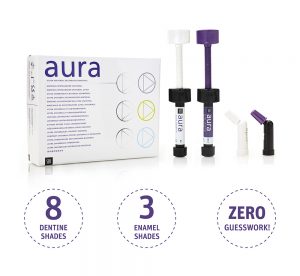 Based on the natural make-up and colours of the dentine and enamel, Aura uses a logical yet innovative approach to shade-matching and layering in one single composite system. Its unique blend of filler and resin work in harmony to deliver the strength and aesthetics needed to provide long-lasting and life-like restorations with ease.