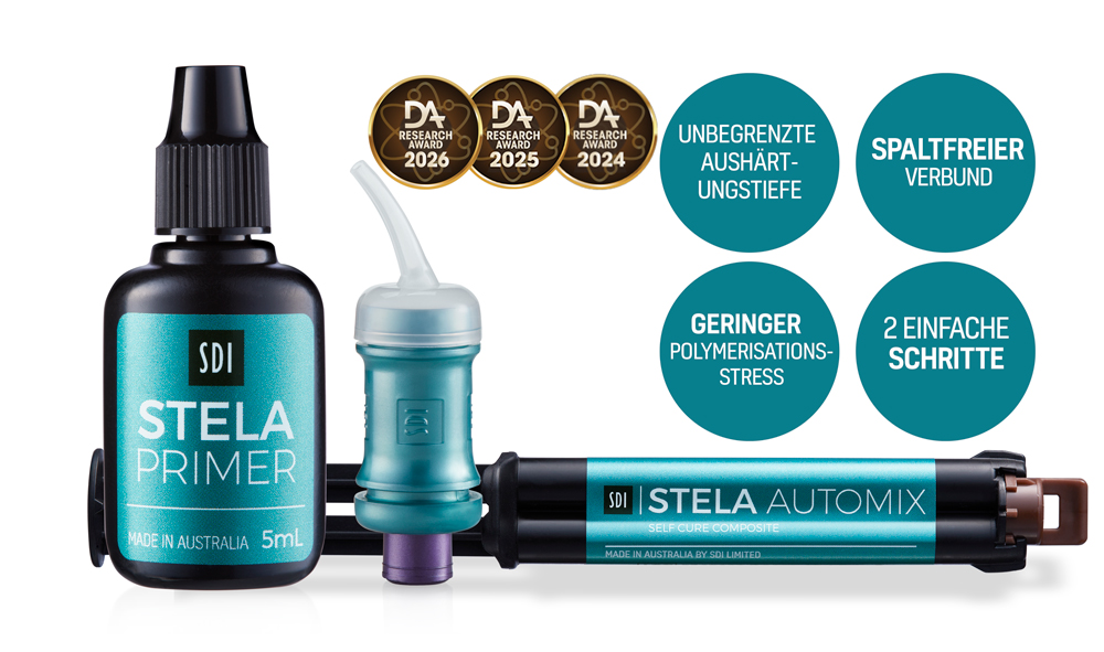 Stela ist ein Komposit der neuen Generation, das in unbegrenzter Tiefe selbsthärtet. Auf vollständig aushärtende Füllungen ist so stets Verlass.